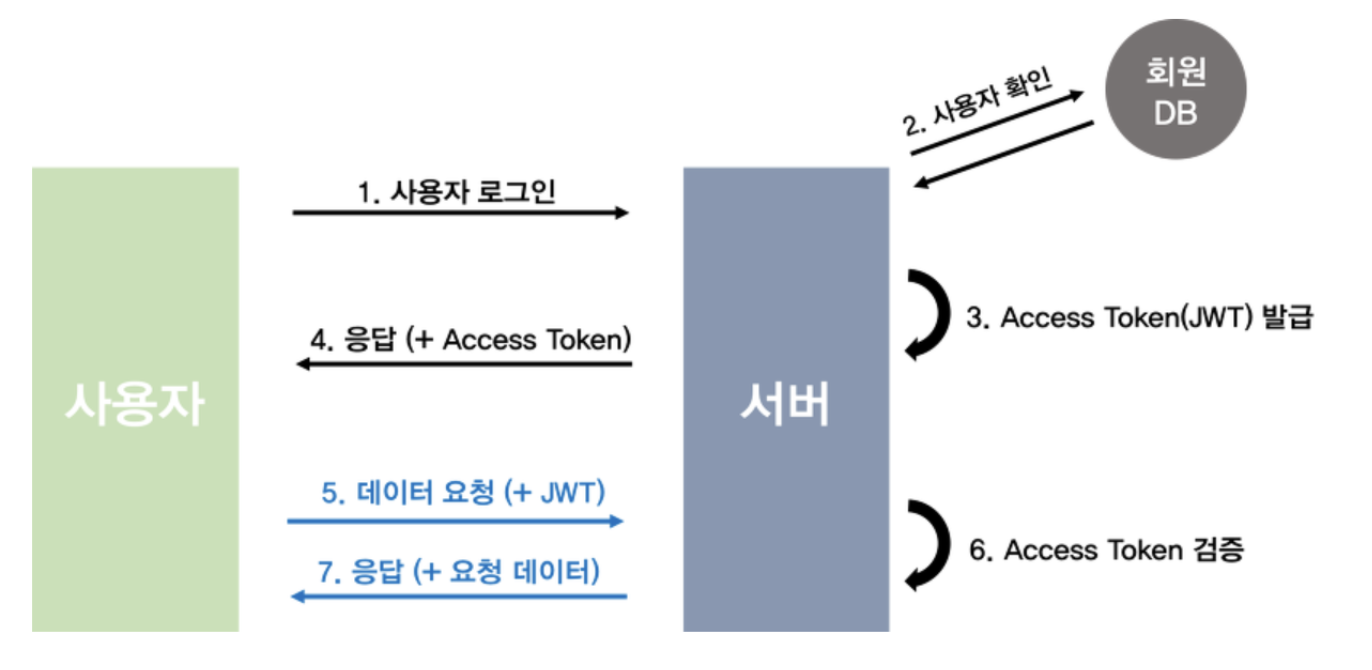 - 사용자가 서버에 요청 시, 헤더에 발급 받은 토큰을 붙여 요청을 보냄