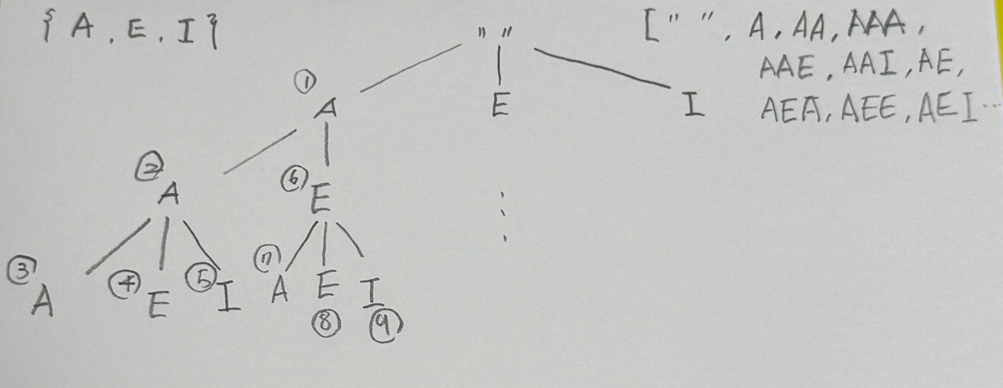 - A → AA → AAA → AAE → AAI → AE → AEA → AEE → AEI